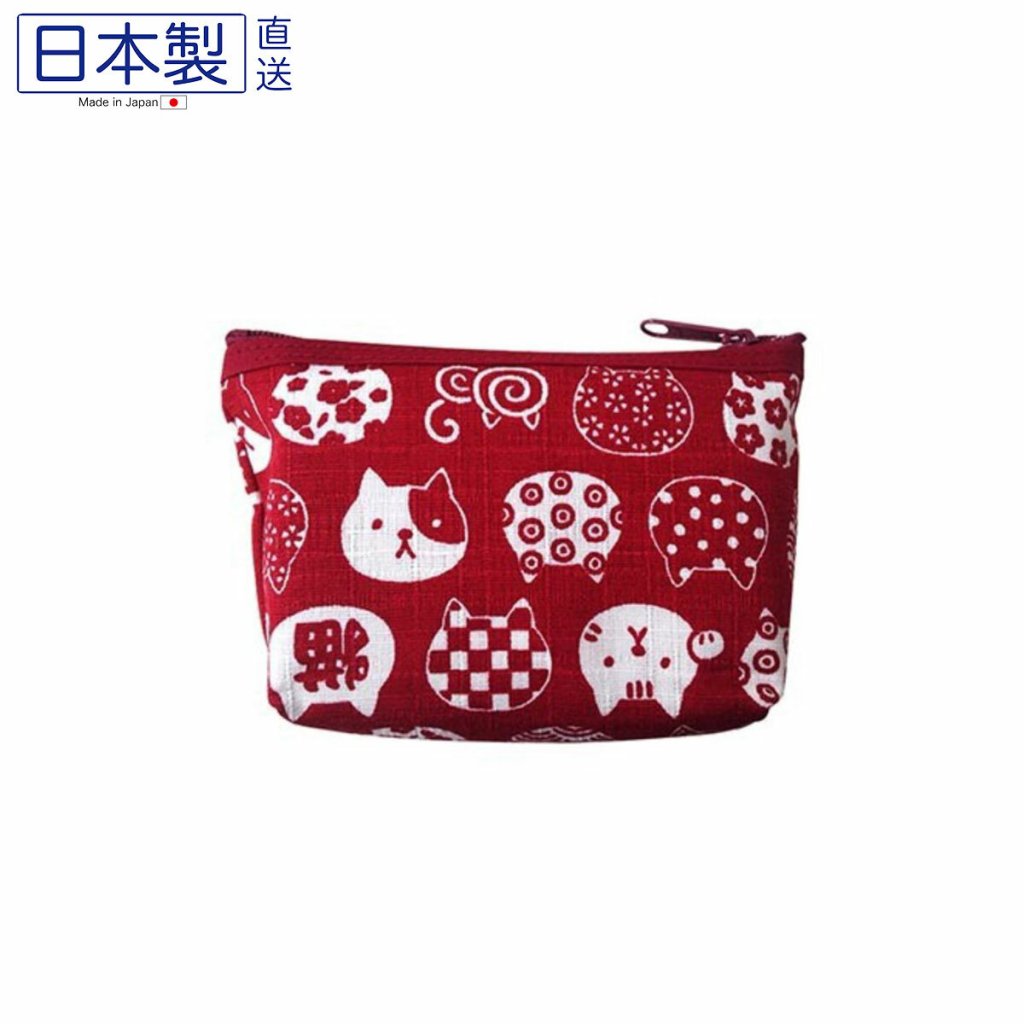 日式可愛貓貓拉鏈袋 (貓頭) (紅色) (日本製)