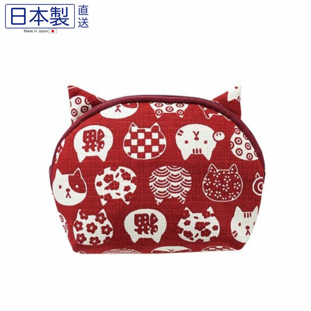 日式可愛貓耳拉鏈袋 (貓頭) (紅色) (日本製)