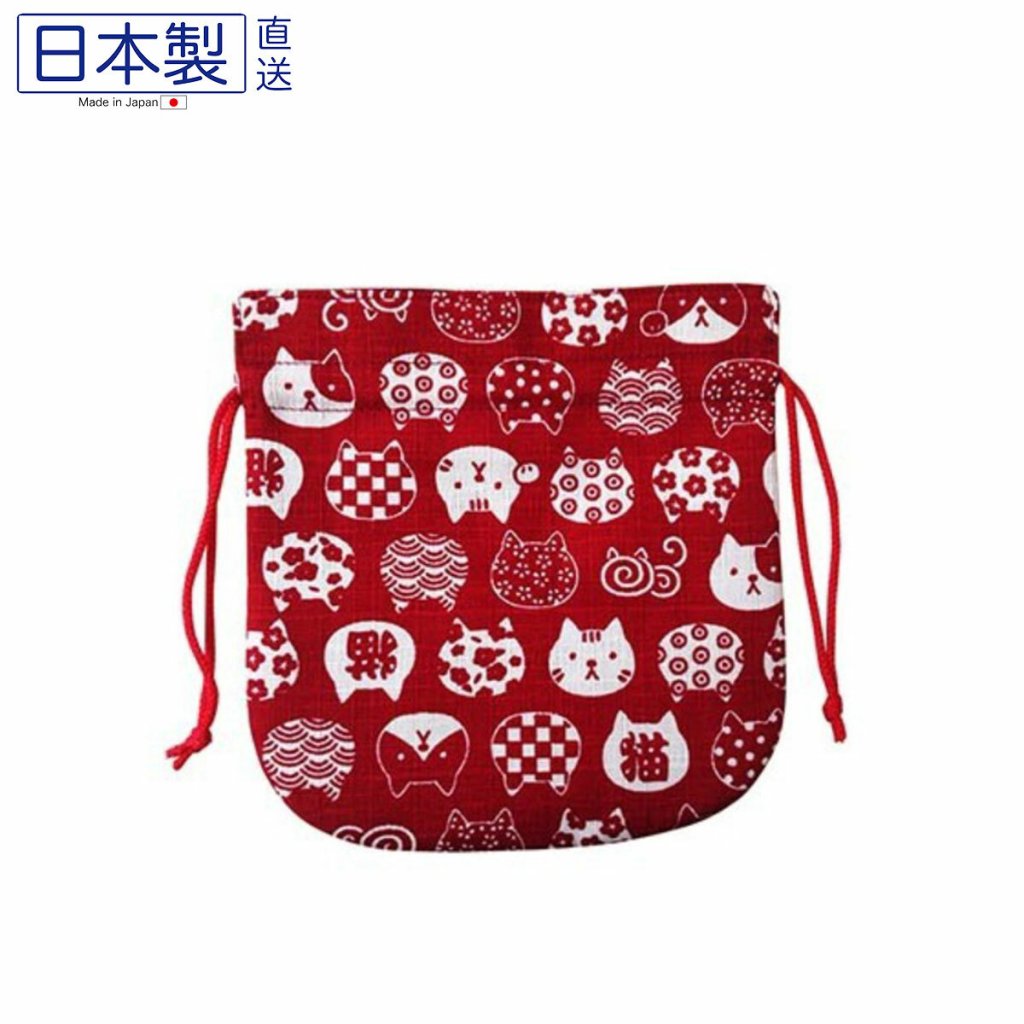 日式可愛貓貓索繩袋 (貓頭) (紅色) (日本製)