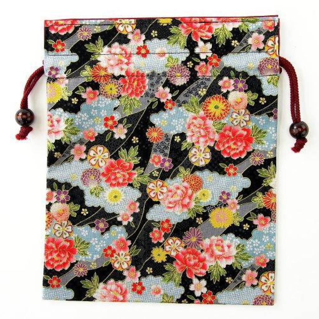 日式雲海に牡丹索繩袋 (黑色) (日本製)