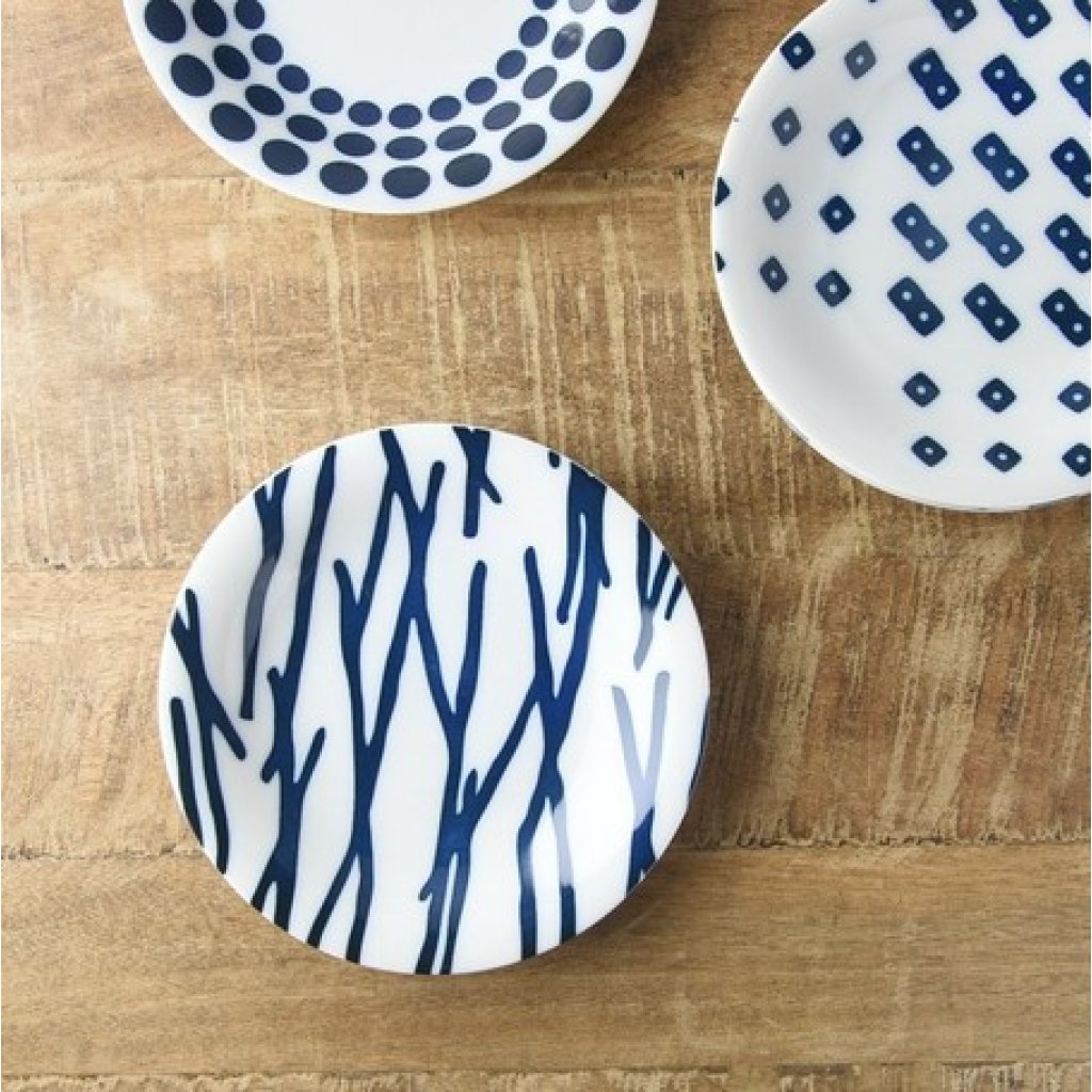 日本美濃燒樹紋碟 (藍白) 16.5CM (日本製)