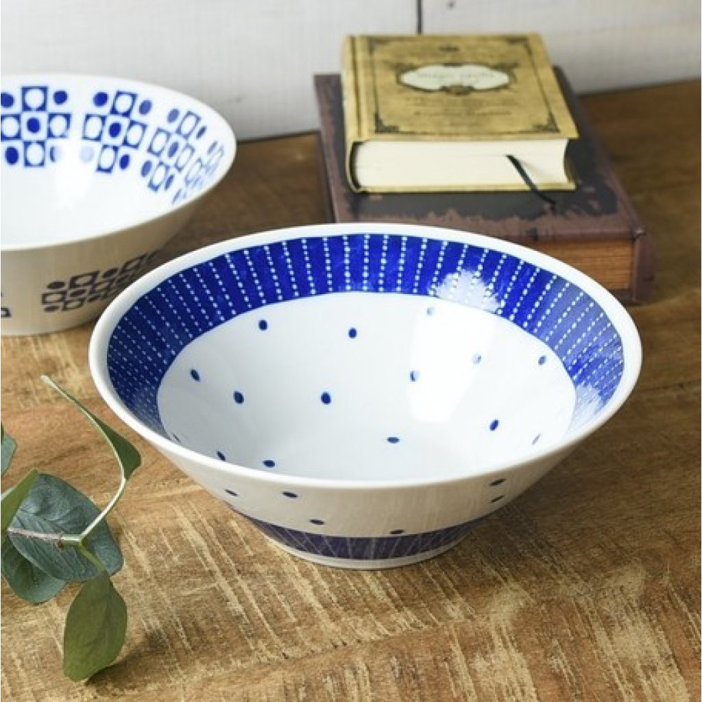 日本美濃燒藍點花紋碗 (藍白) 20.5CM (日本製)
