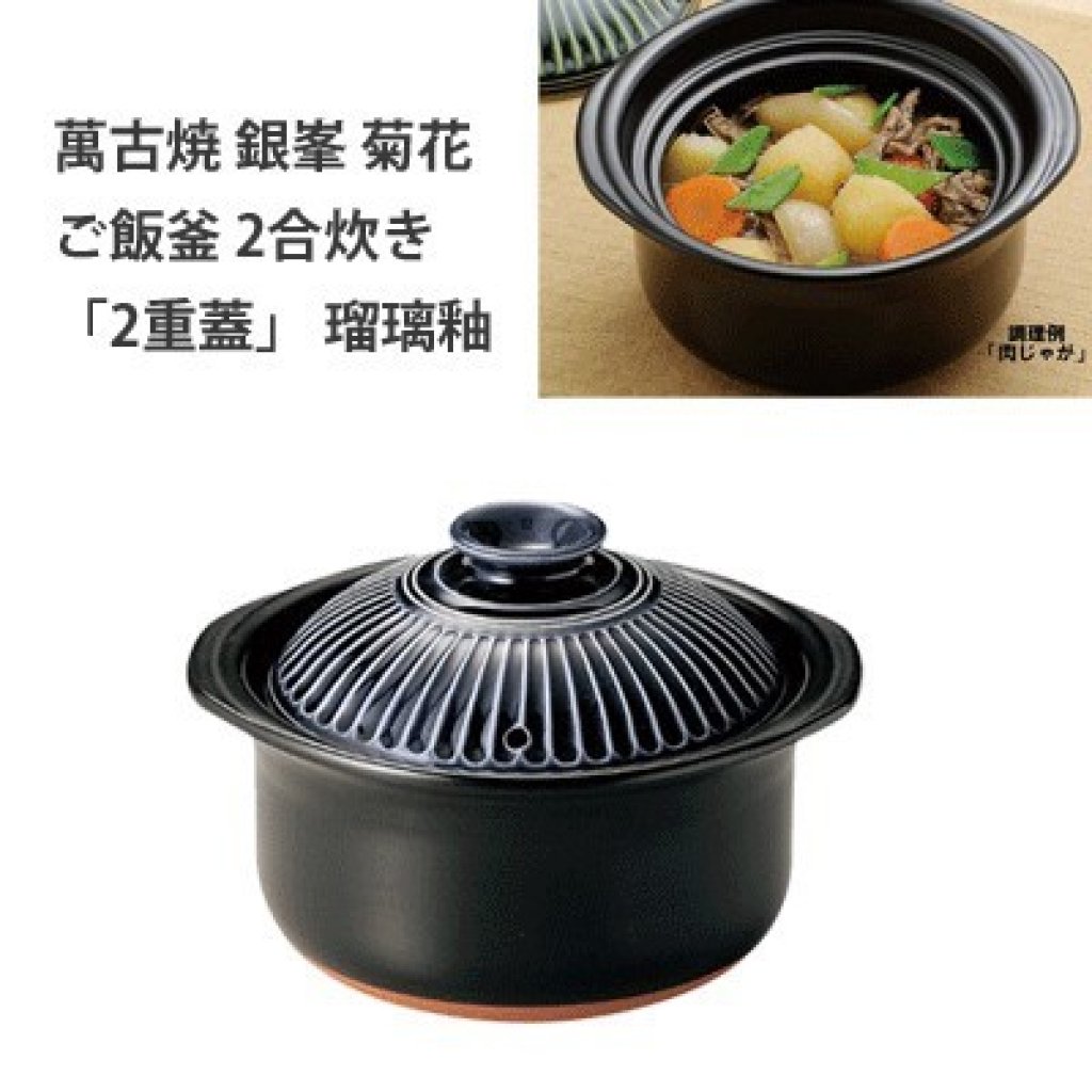 日式萬古燒菊花萬用陶瓷鍋(雙蓋)(小) (明火/微波爐/焗爐OK!) (日本製)