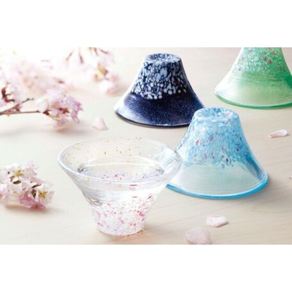 日式祝福櫻花富士山玻璃杯 (綠色) (日本製)
