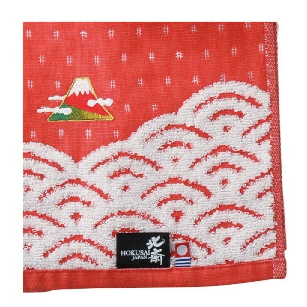 日本今治x北斎江戸時代 方巾 (紅色) 34x36 (日本製)