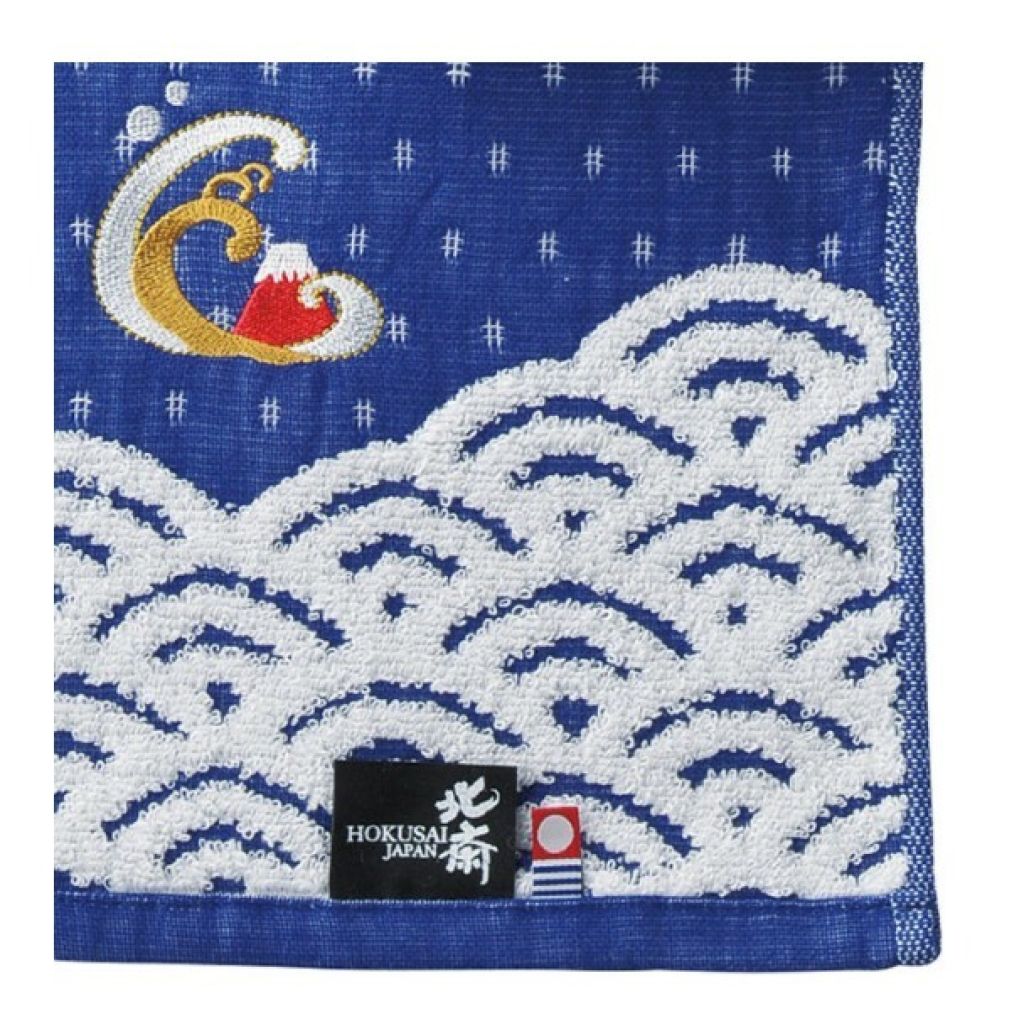 日本今治x北斎江戸時代 方巾 (藍色) 34x36 (日本製)
