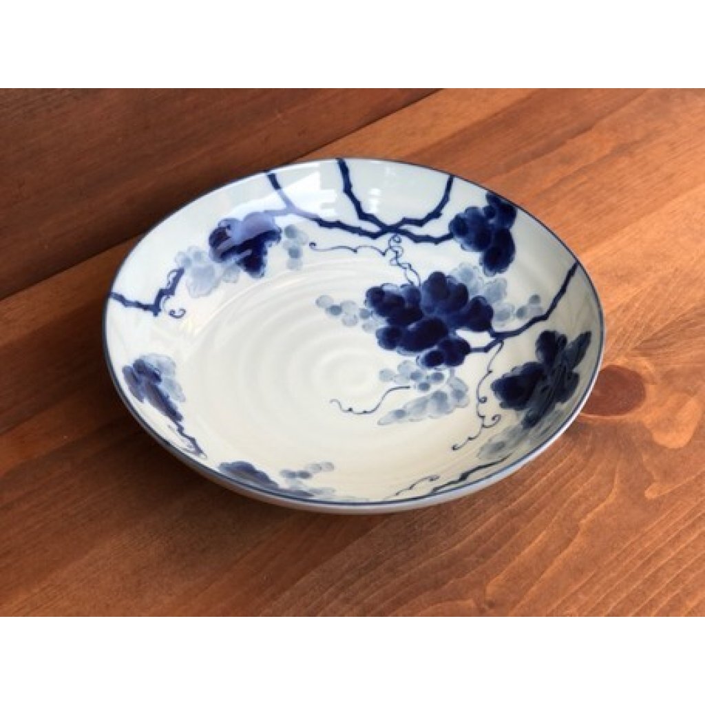 日式陶瓷藍染花紋瓦碟 21CM (日本製)