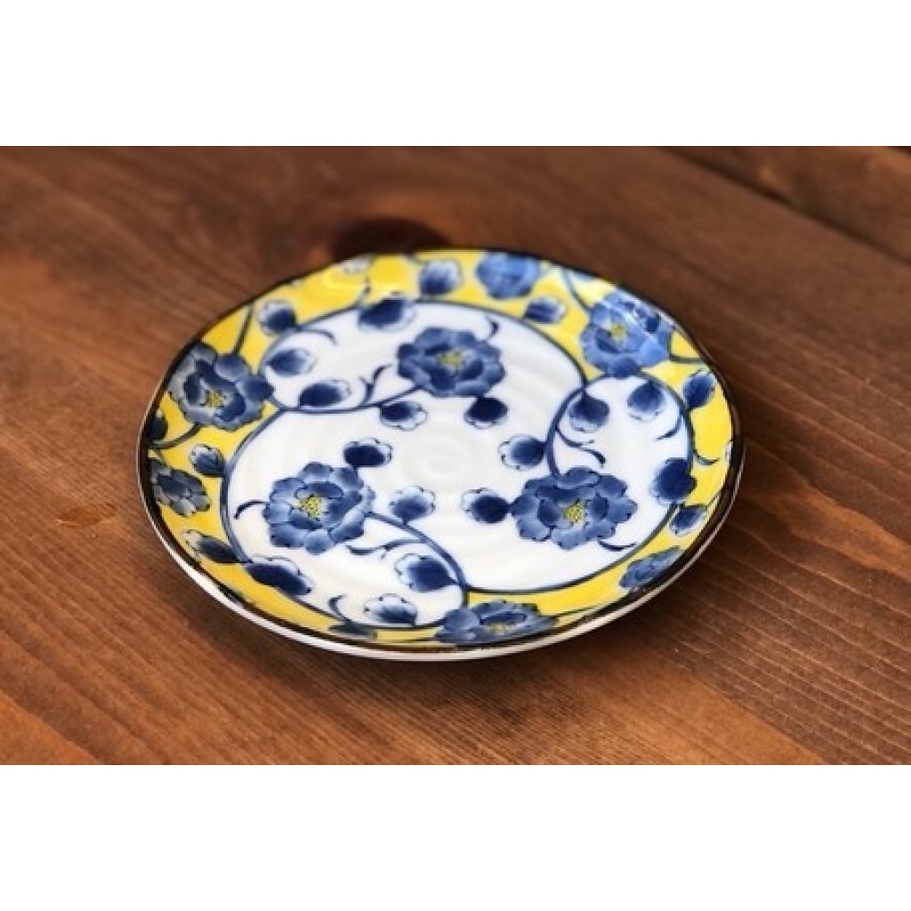 日式陶瓷黄彩牡丹平碟 16CM (日本製)