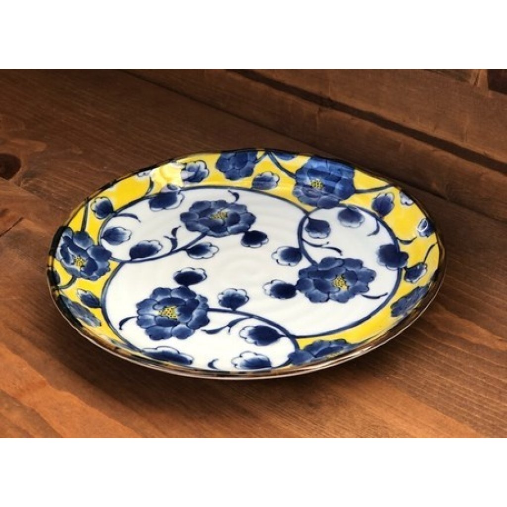 日式陶瓷黄彩牡丹瓦碟 25CM (日本製)