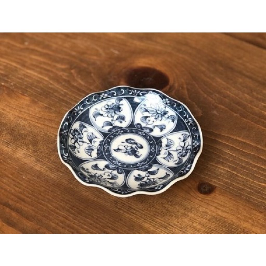 日式陶瓷染付波型間取小花瓦碟 11CM (日本製)