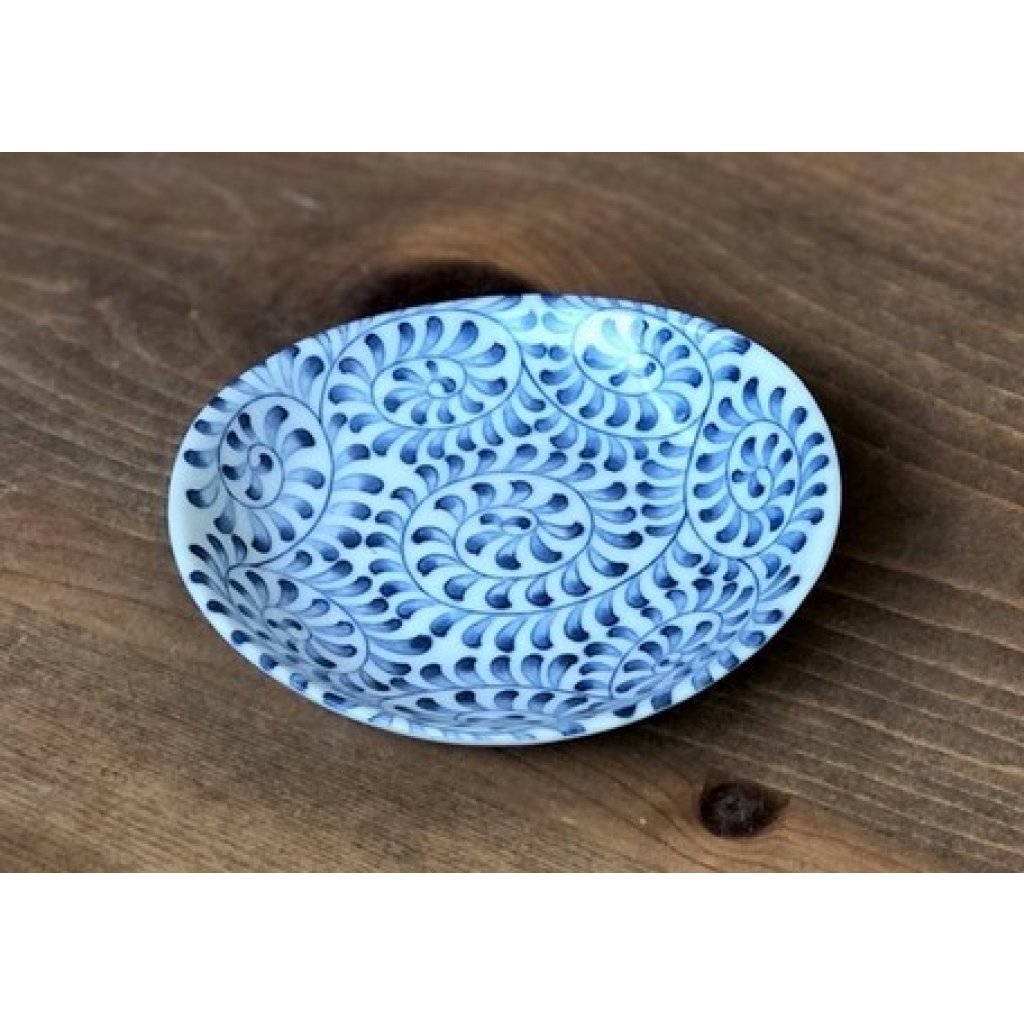 日式陶瓷染付唐草楕円瓦碟 11CM (日本製)