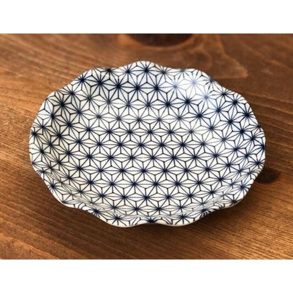 日式陶瓷波型藍染麻葉瓦碟 11CM (日本製)