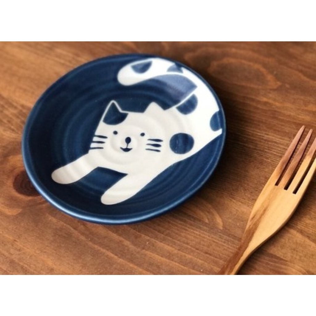 日式陶瓷藍染貓貓瓦碟 14CM (日本製)