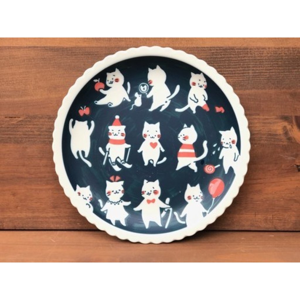 日式陶瓷幸福白貓瓦碟 24CM (日本製)