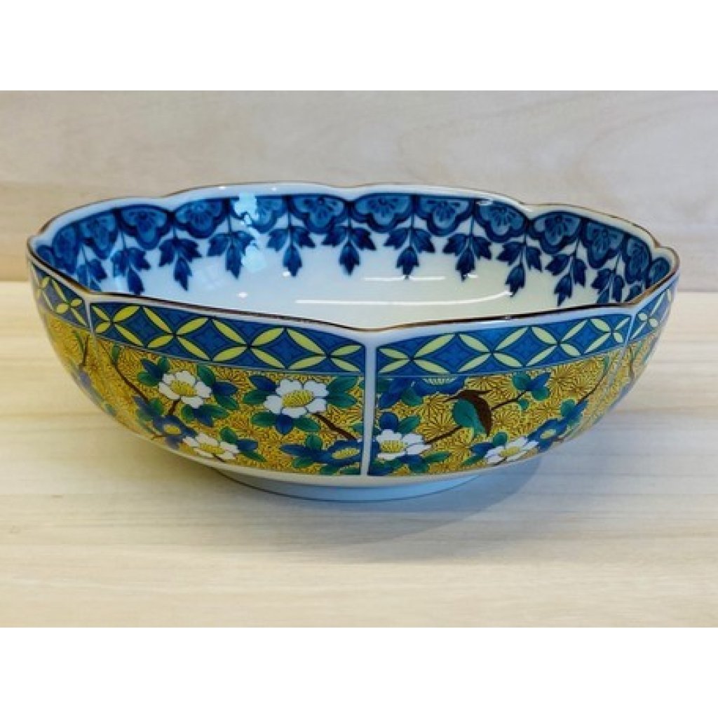 日式陶瓷黃花鳥瓦碗 20CM (日本製)