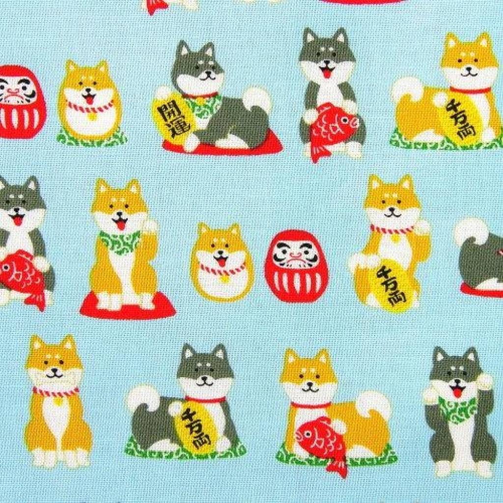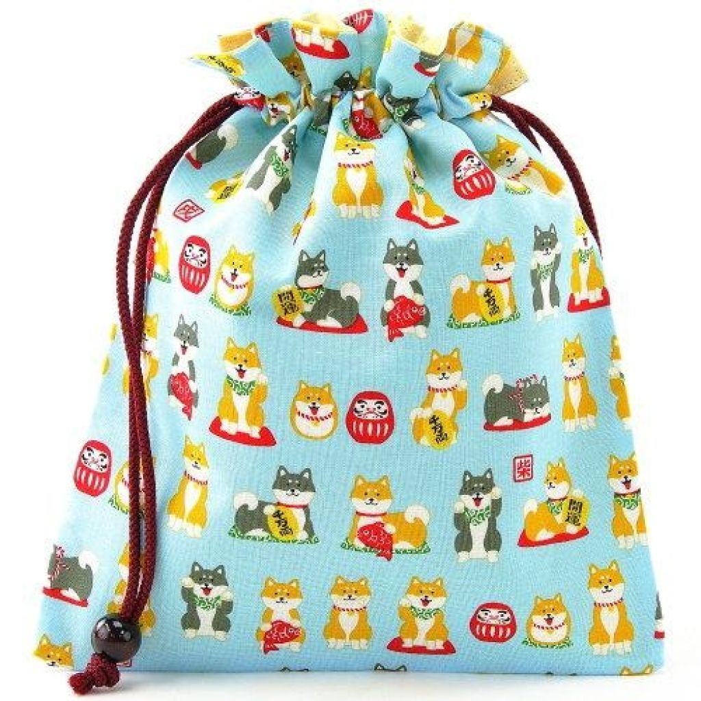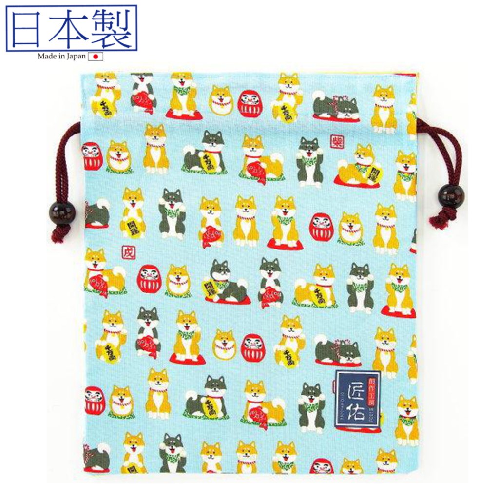 可愛柴犬索繩袋 (淺藍色) (日本製)