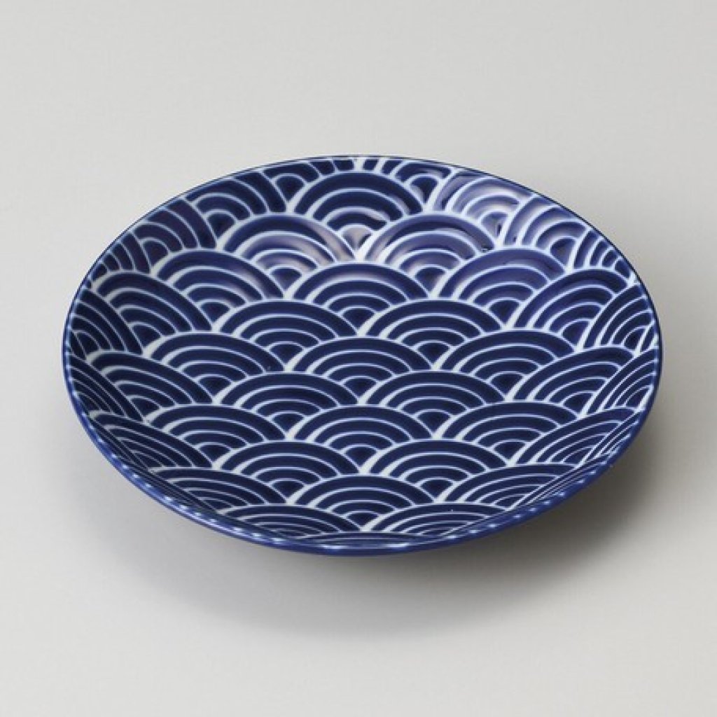 日式陶瓷波浪瓦碟 (藍色) 16CM (日本製)