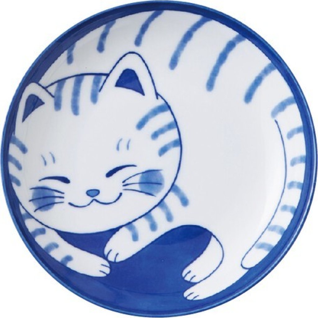 日式陶瓷大貓貓瓦碟(藍色) 20CM (日本製)