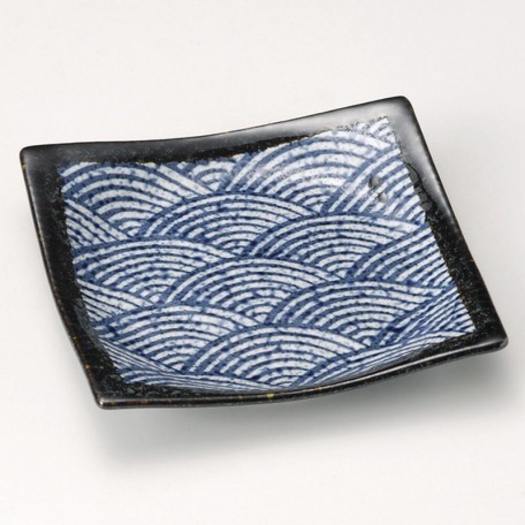 日式陶瓷波浪方型瓦碟 (藍色) 13CM (日本製)