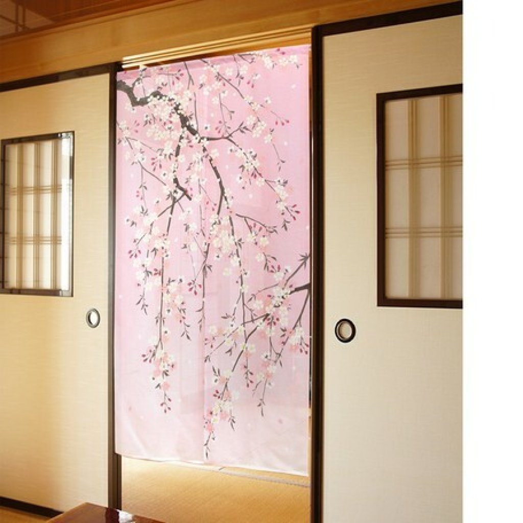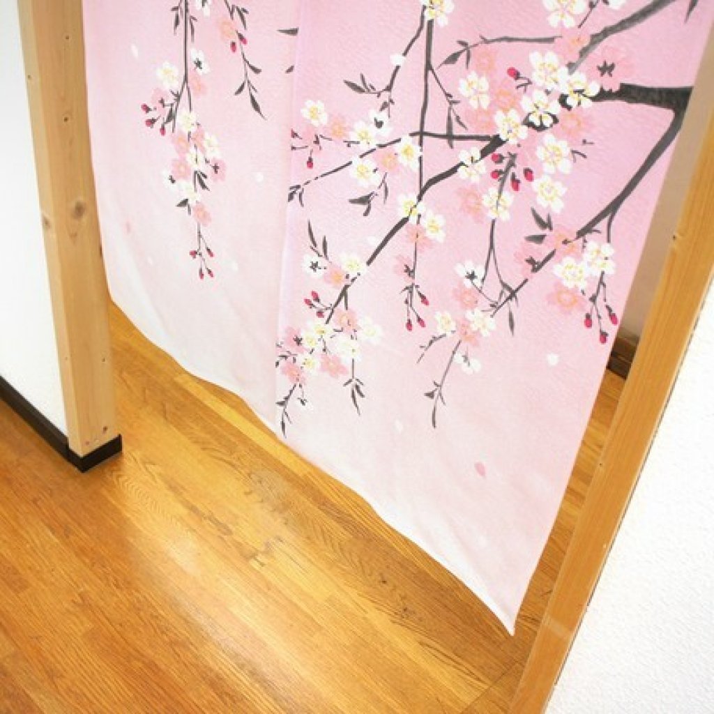 日式和風門簾 85x150 (粉紅櫻花) (日本製)