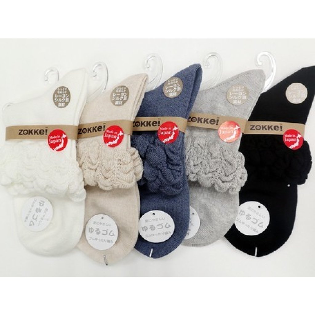 日式人造絲花邊襪 (灰色) (日本製)