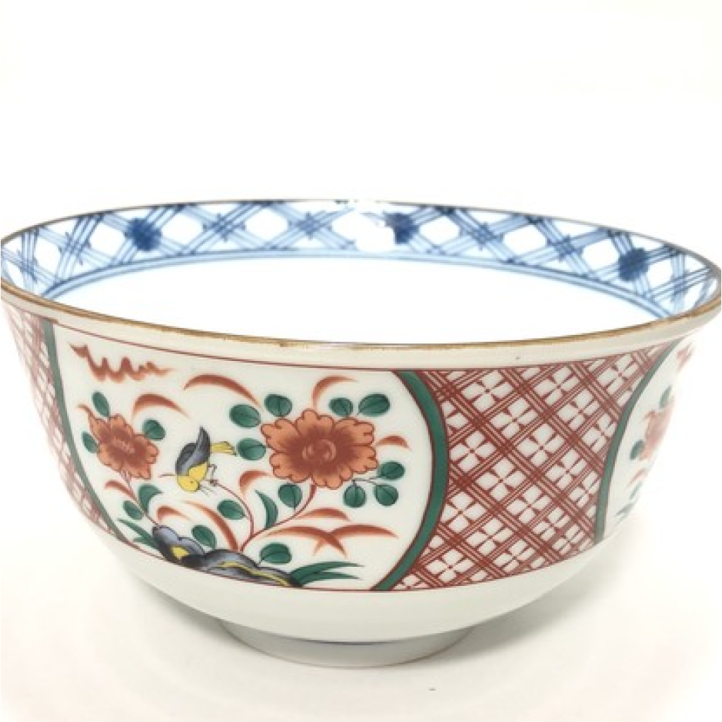 日式陶瓷間取花鳥瓦碗 16CM (日本製)