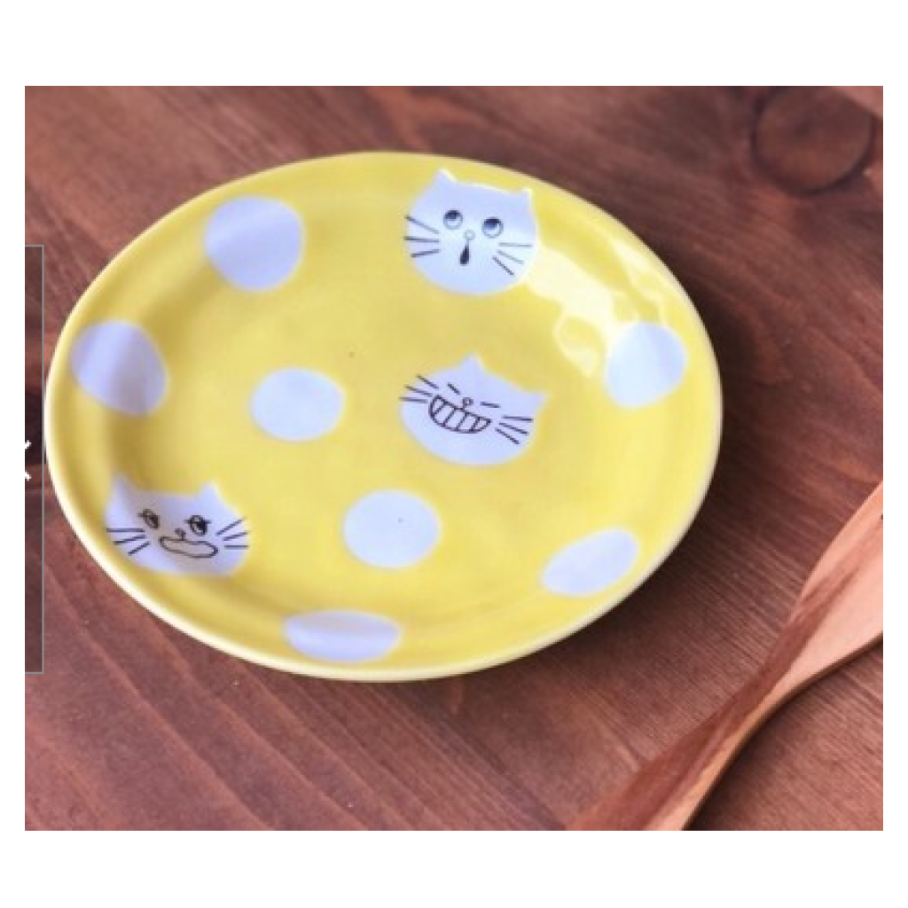 日式陶瓷花貓瓦碟 16CM (黃色) (日本製)