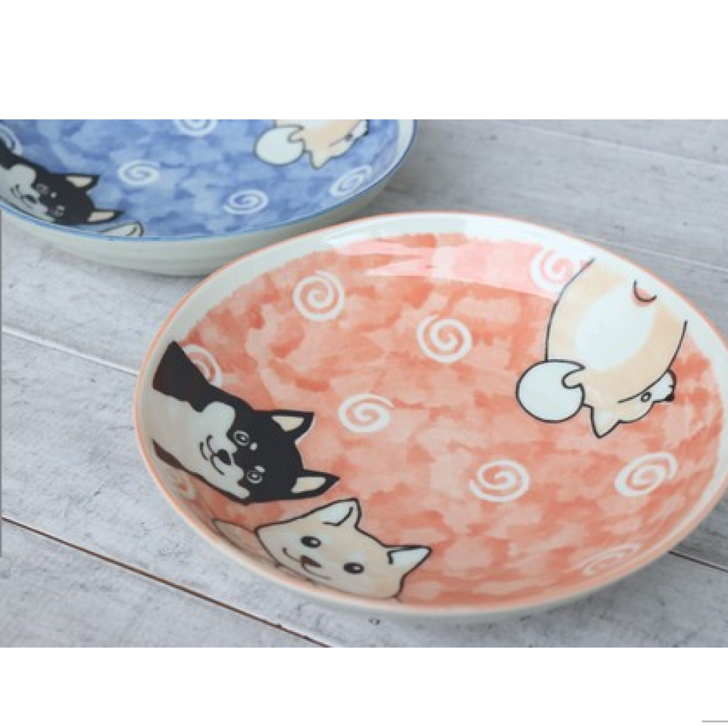 日式陶瓷柴犬瓦碟 21CM (粉紅) (日本製)