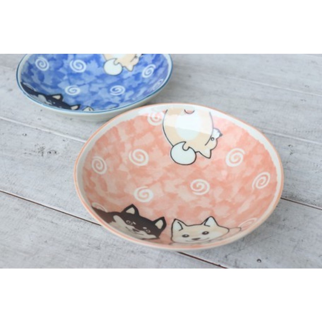 日式陶瓷柴犬瓦碟 17CM (粉紅) (日本製)