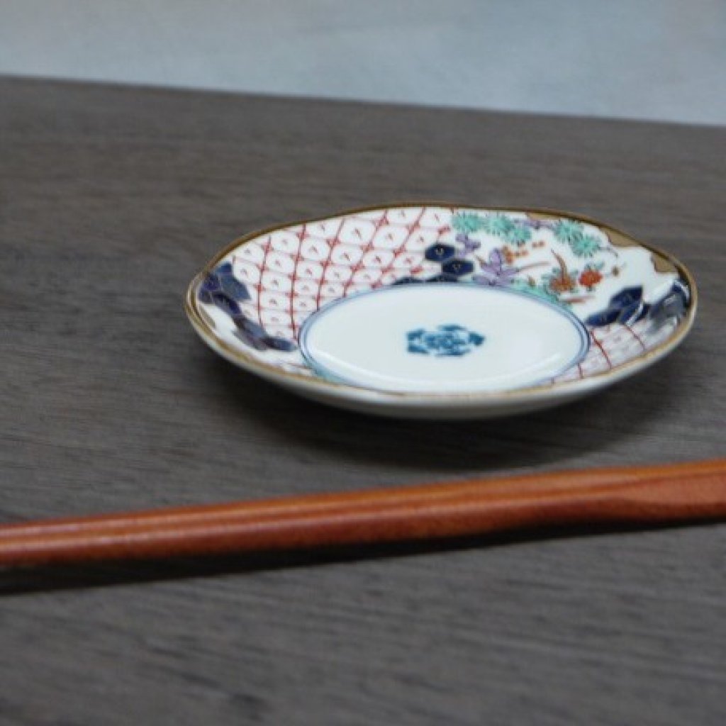 日式美濃燒染錦古伊万里瓦碟(間取錦草花) 12CM (日本製)