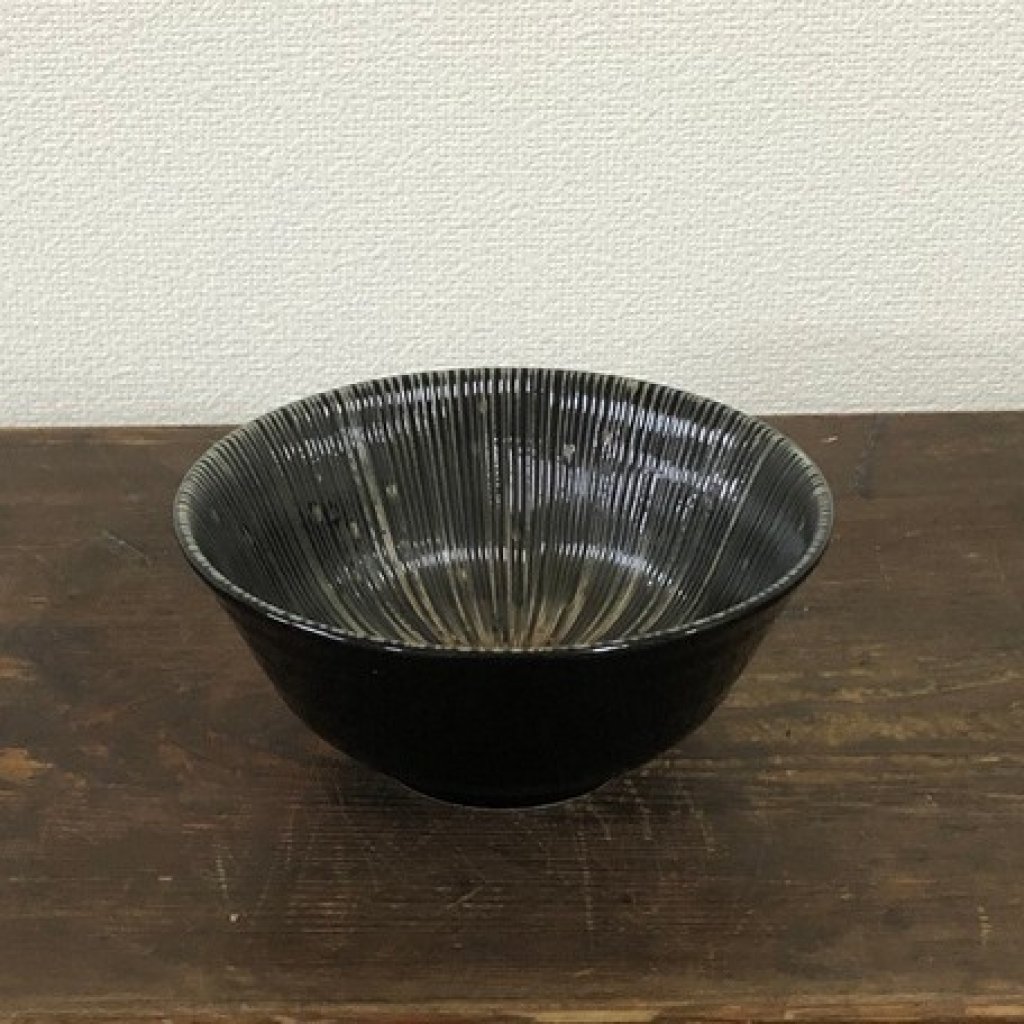 日式美濃燒千段十草瓦碗 (黑色) 15CM (日本製)