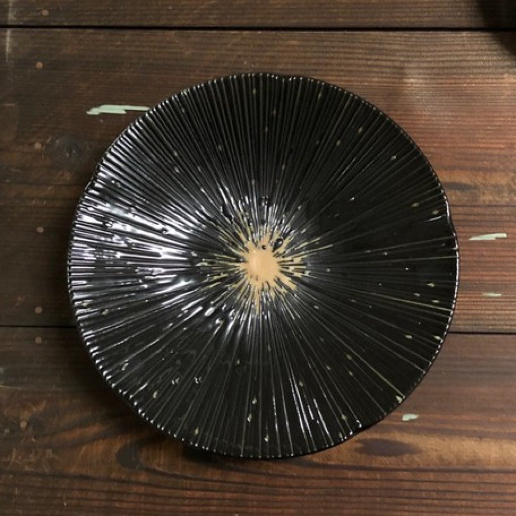 日式美濃燒千段十草瓦碟 (黑色) 22CM (日本製)