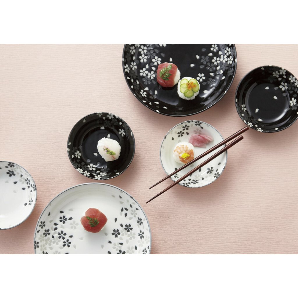 日式美濃燒櫻花瓦碟套裝(5枚入) (黑白) (日本製)