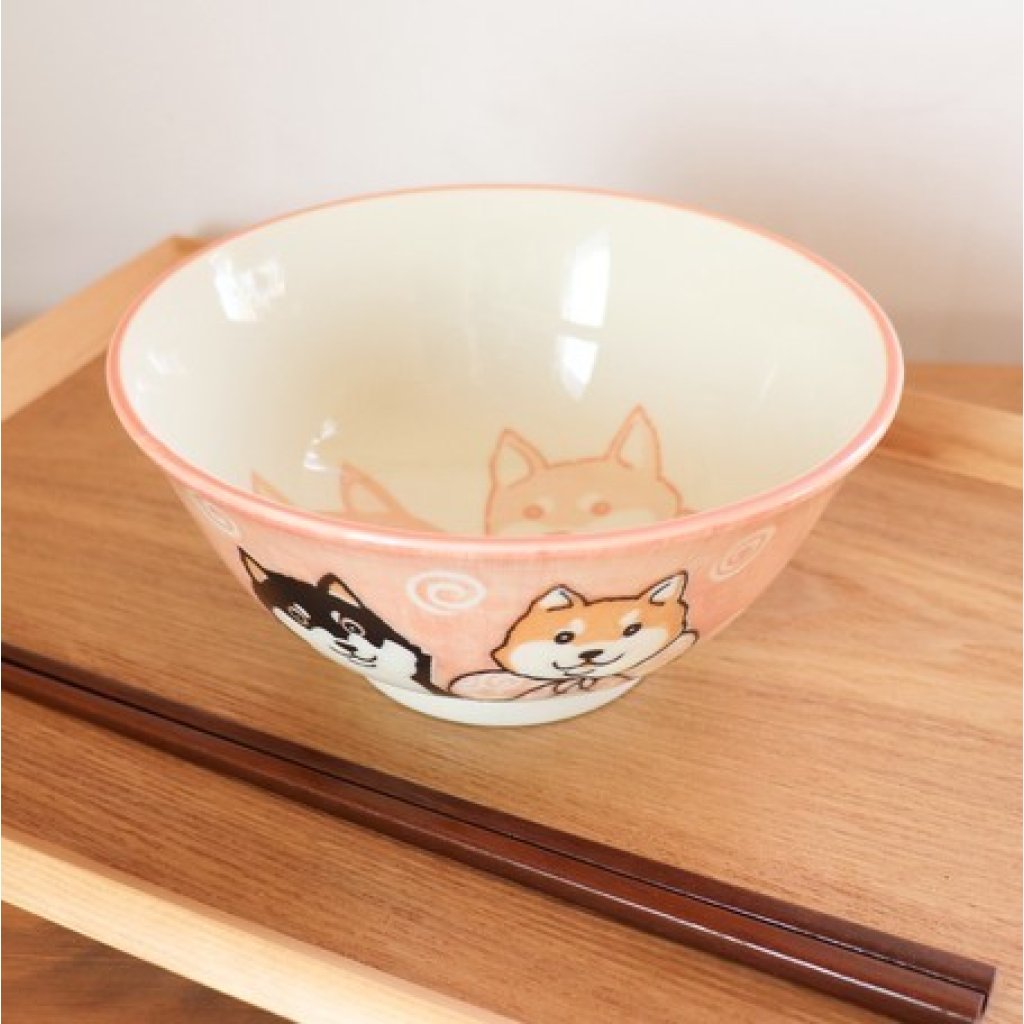 日式陶瓷柴犬瓦碗 15CM (粉紅) (日本製)