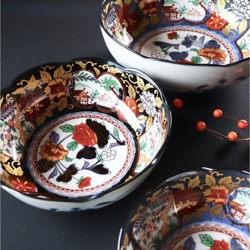 日本美濃燒金彩牡丹瓦碗 20CM (日本製)