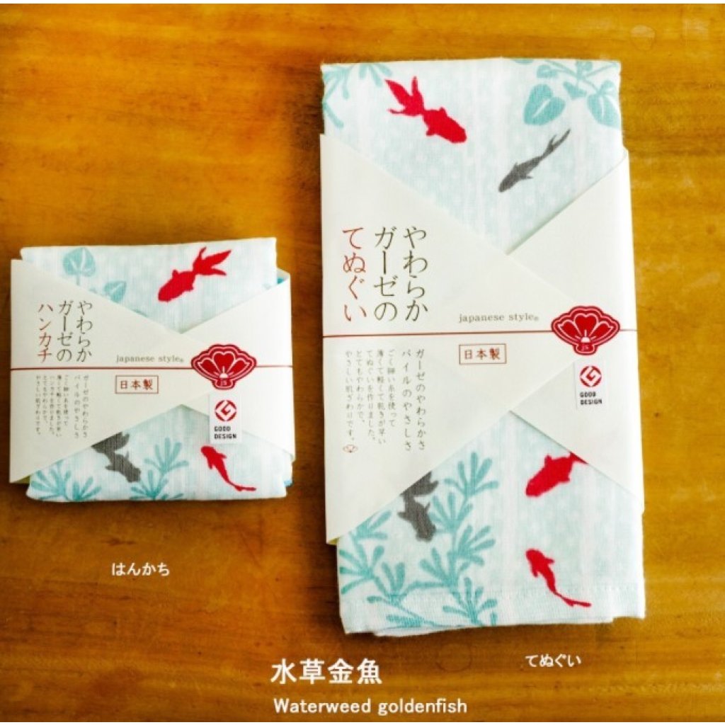 日式傳統紗巾 (水草金魚) 30x30 (日本製)