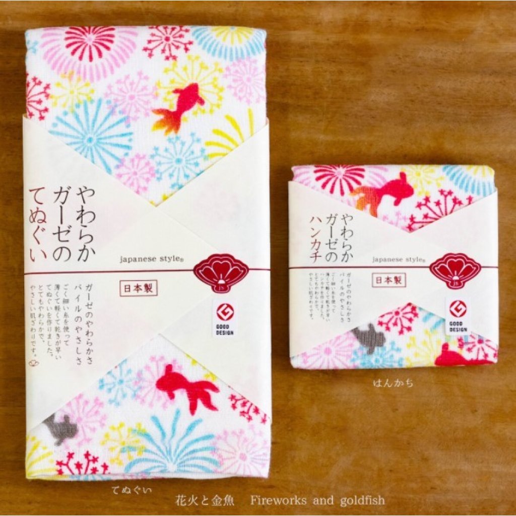 日式傳統紗巾 (花火金魚) 30x30 (日本製)