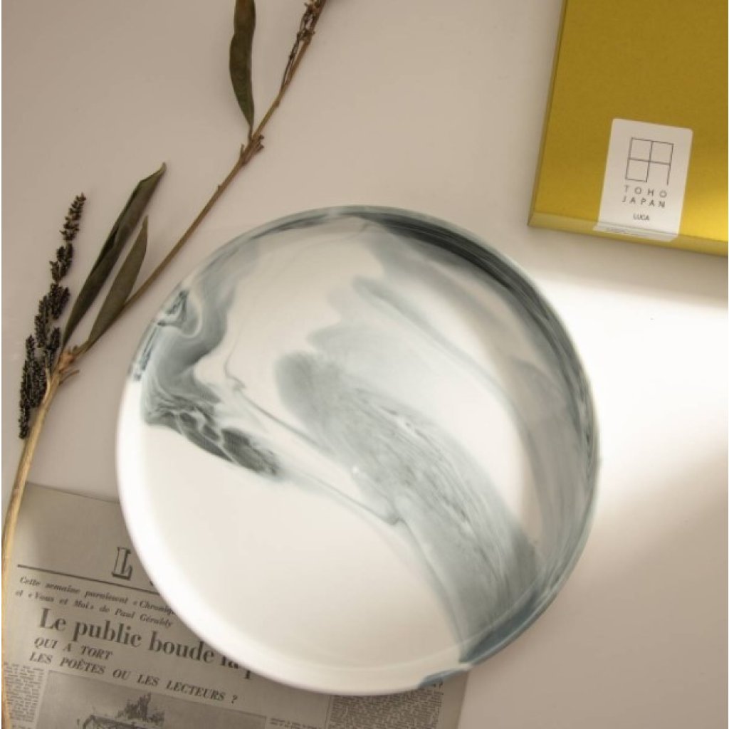 日本美濃焼東峰窯Luca大理石紋瓦碟 24.5CM (灰) (日本製)