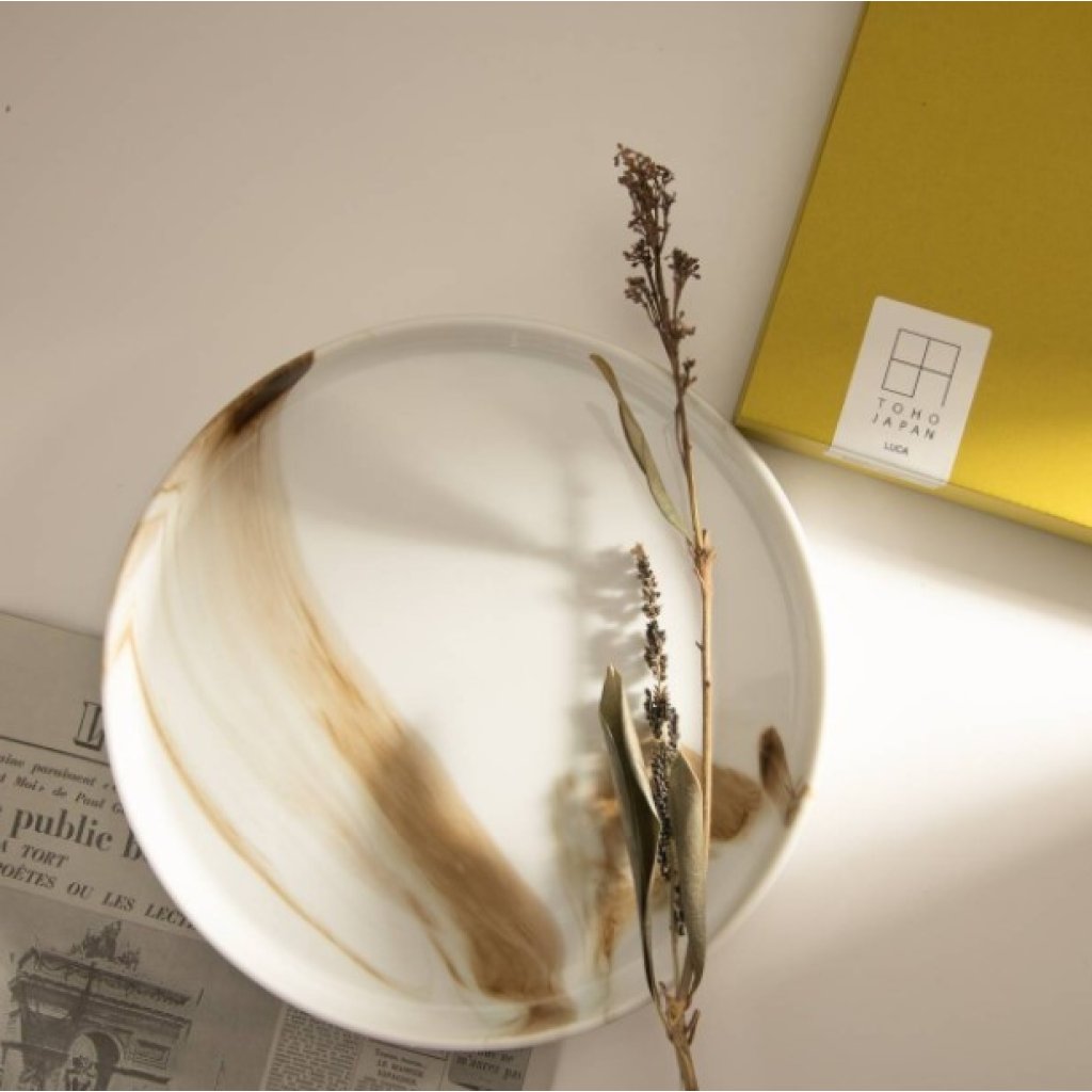 日本美濃焼東峰窯Luca大理石紋瓦碟 24.5CM (啡) (日本製)