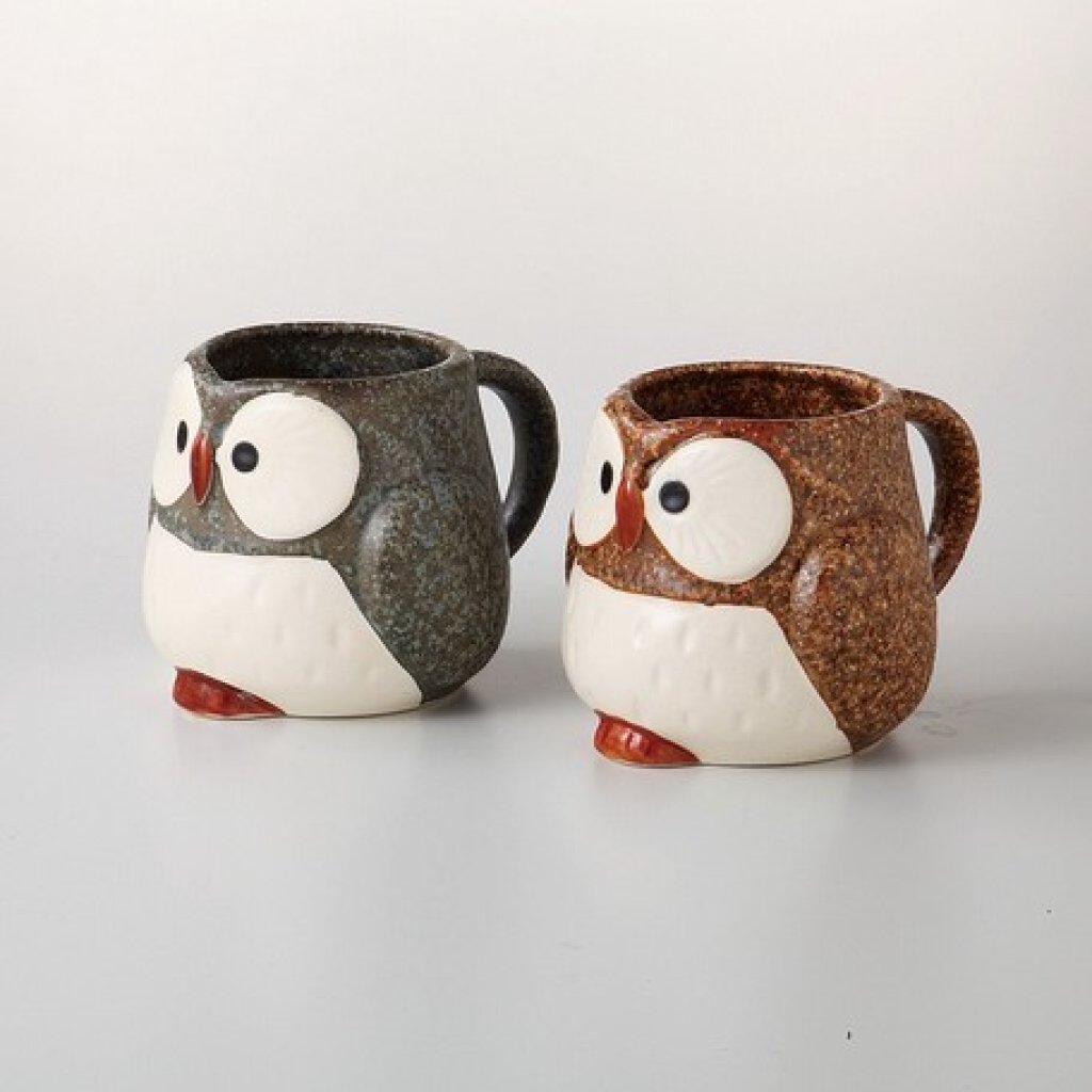 日式美濃燒貓頭鷹瓦杯 (2枚入) (日本製)