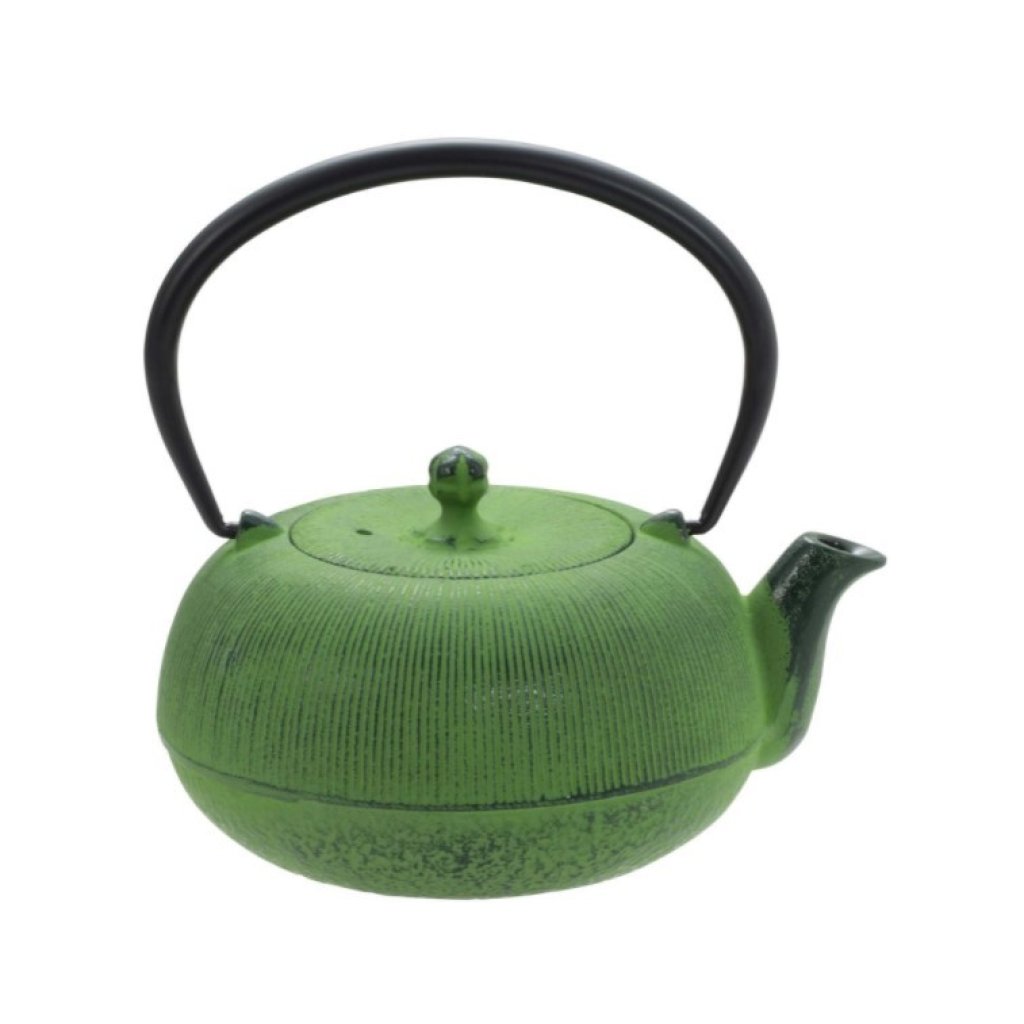 日本南部鐵器[急須平丸千筋]鐵茶壺 0.7L (綠) (日本製)