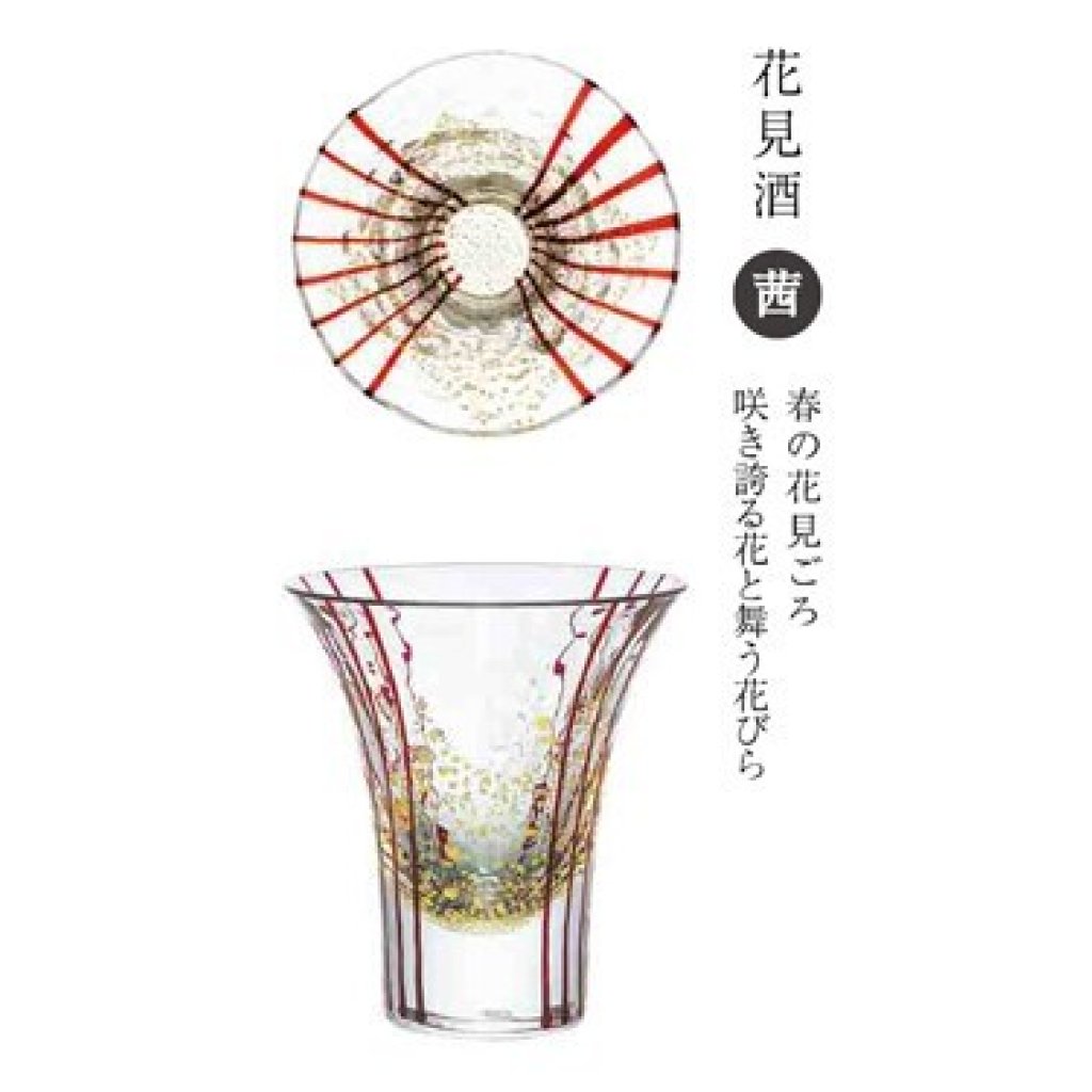 日本江戸硝子八千代窯清酒杯 (紅) (日本製)