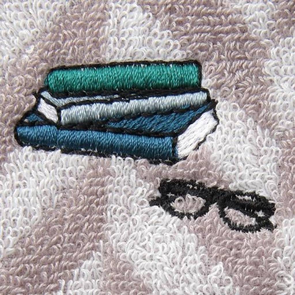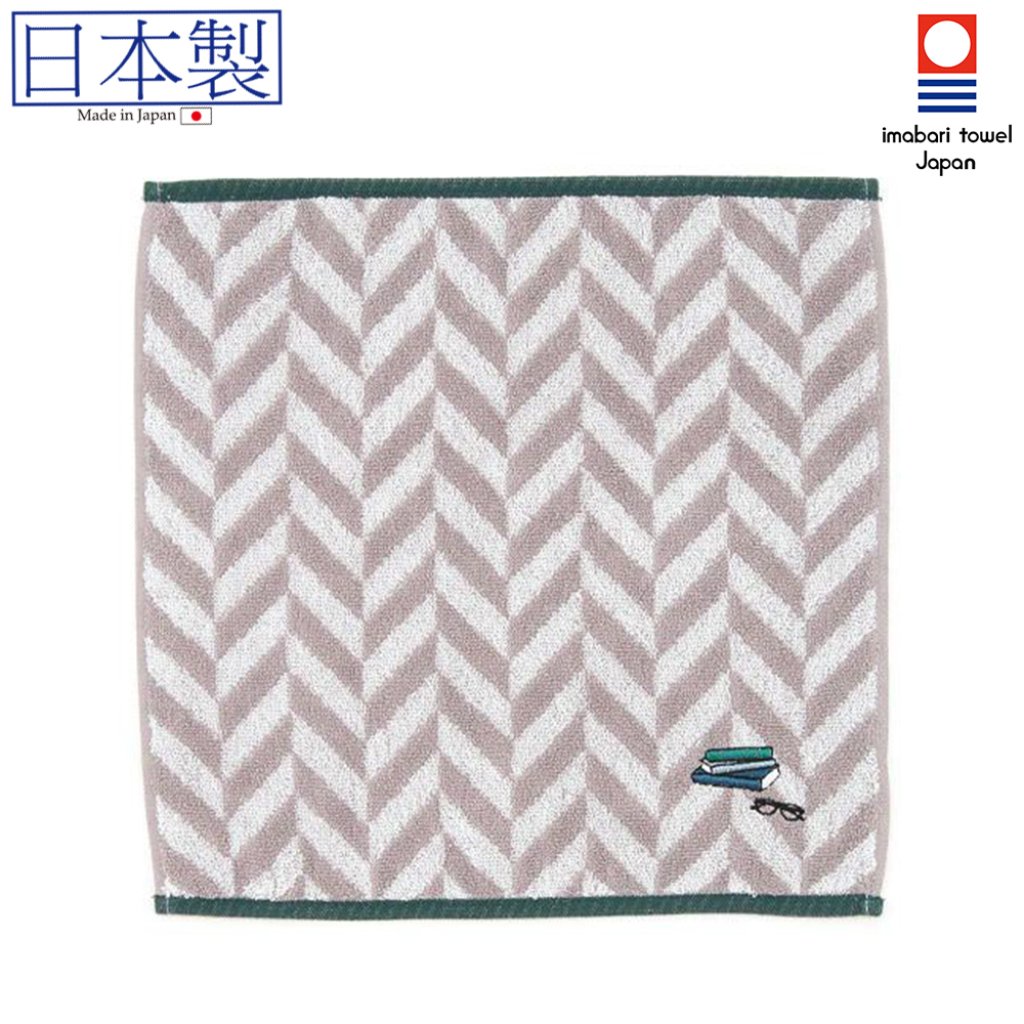 日本今治刺繡圖案方巾 (書本眼鏡) (淺灰色) 26x26 (日本製)