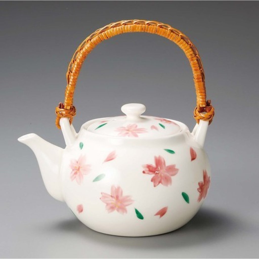 日本美濃燒富白磁紅櫻茶壺 (日本製)