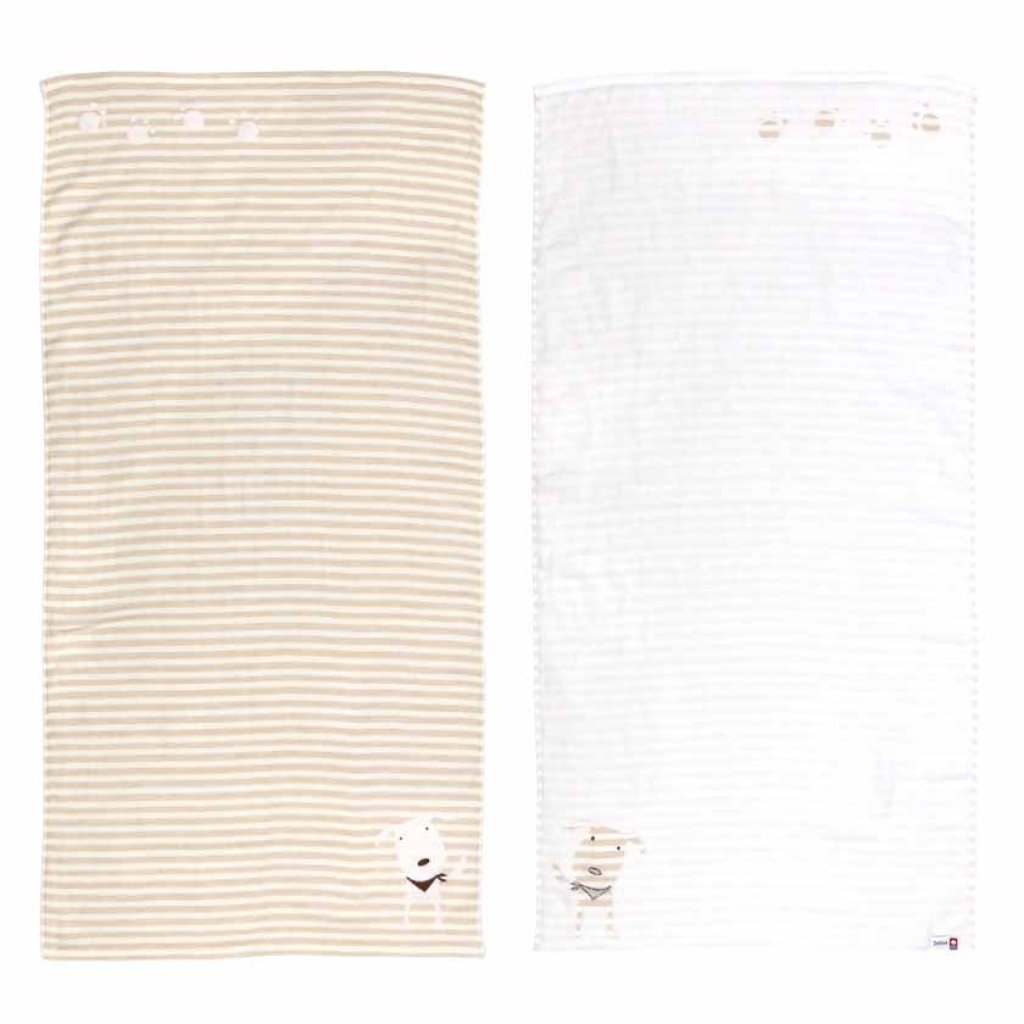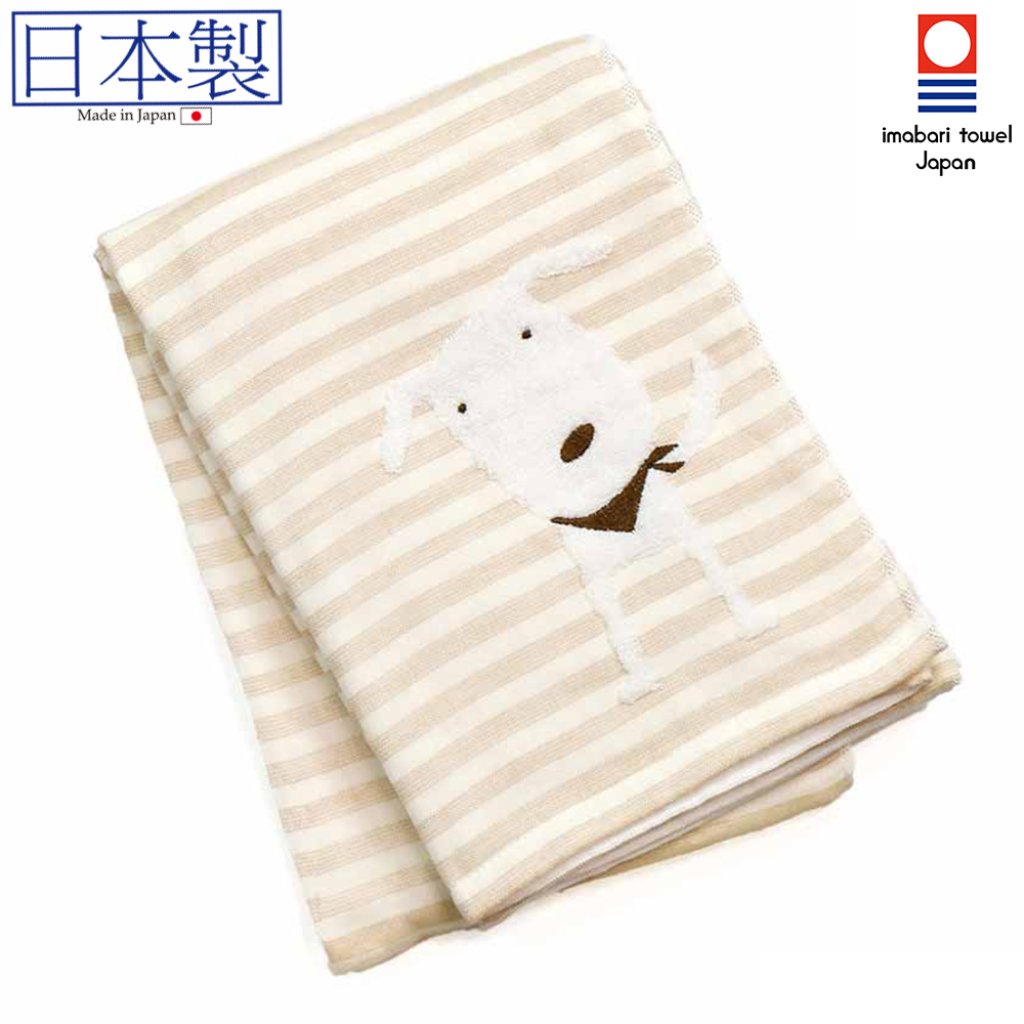 日本今治xSelbie Pon白犬 絨毛拼紗巾雙面大浴巾 (米色) 60x120 (日本製)