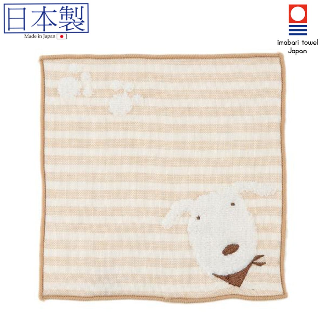 日本今治xSelbie Pon白犬 絨毛拼紗巾雙面小方巾 (米色) 15x15 (日本製)