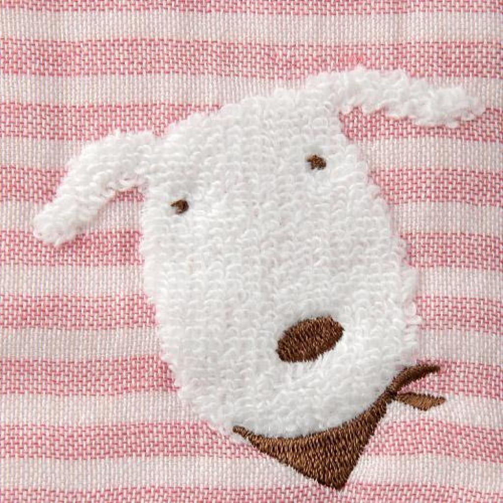 日本今治xSelbie Pon白犬 絨毛拼紗巾雙面小方巾 (粉紅) 15x15 (日本製)