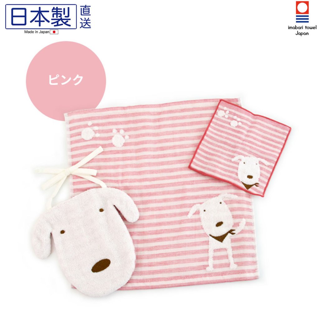 日本今治xSelbie Pon白犬 嬰兒毛巾連口水肩禮盒套裝(粉紅) (日本製)