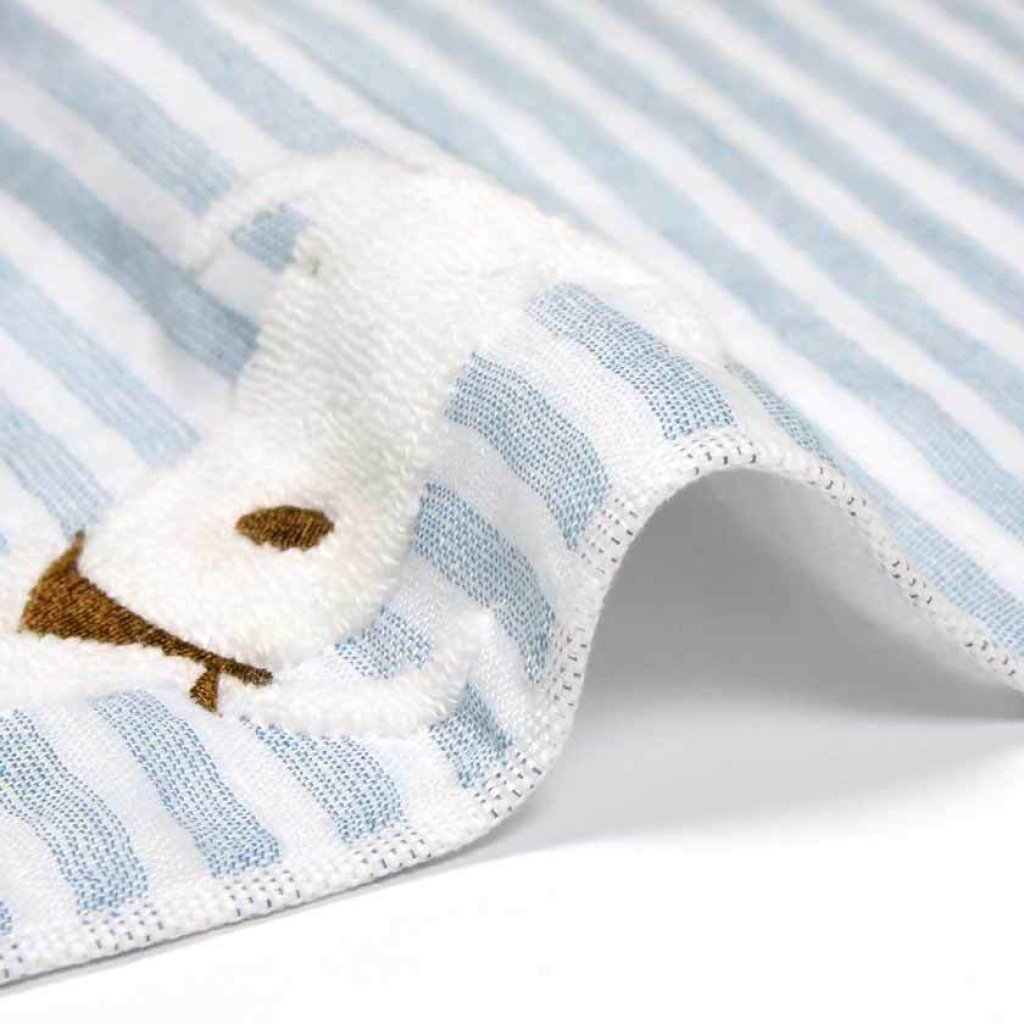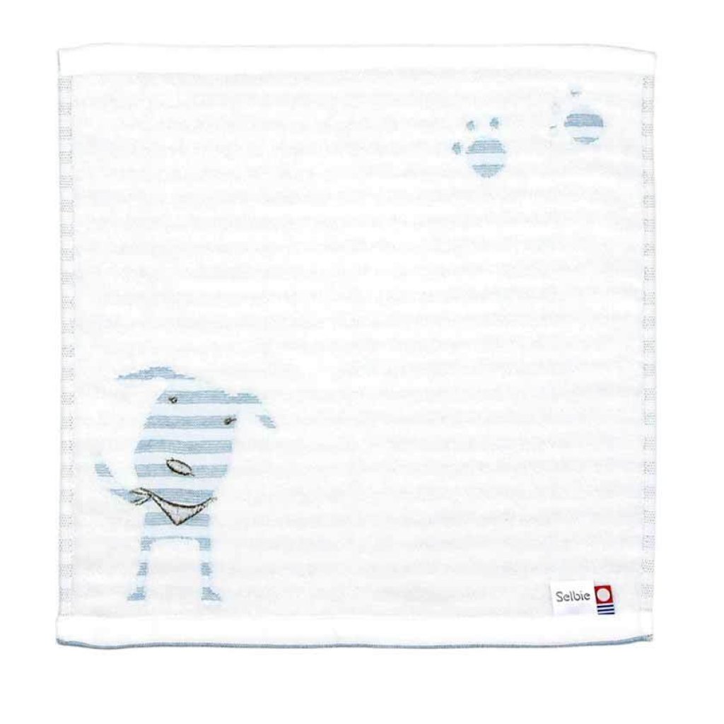 日本今治xSelbie Pon白犬 絨毛拼紗巾雙面方巾 (粉藍) 34x35 (日本製)