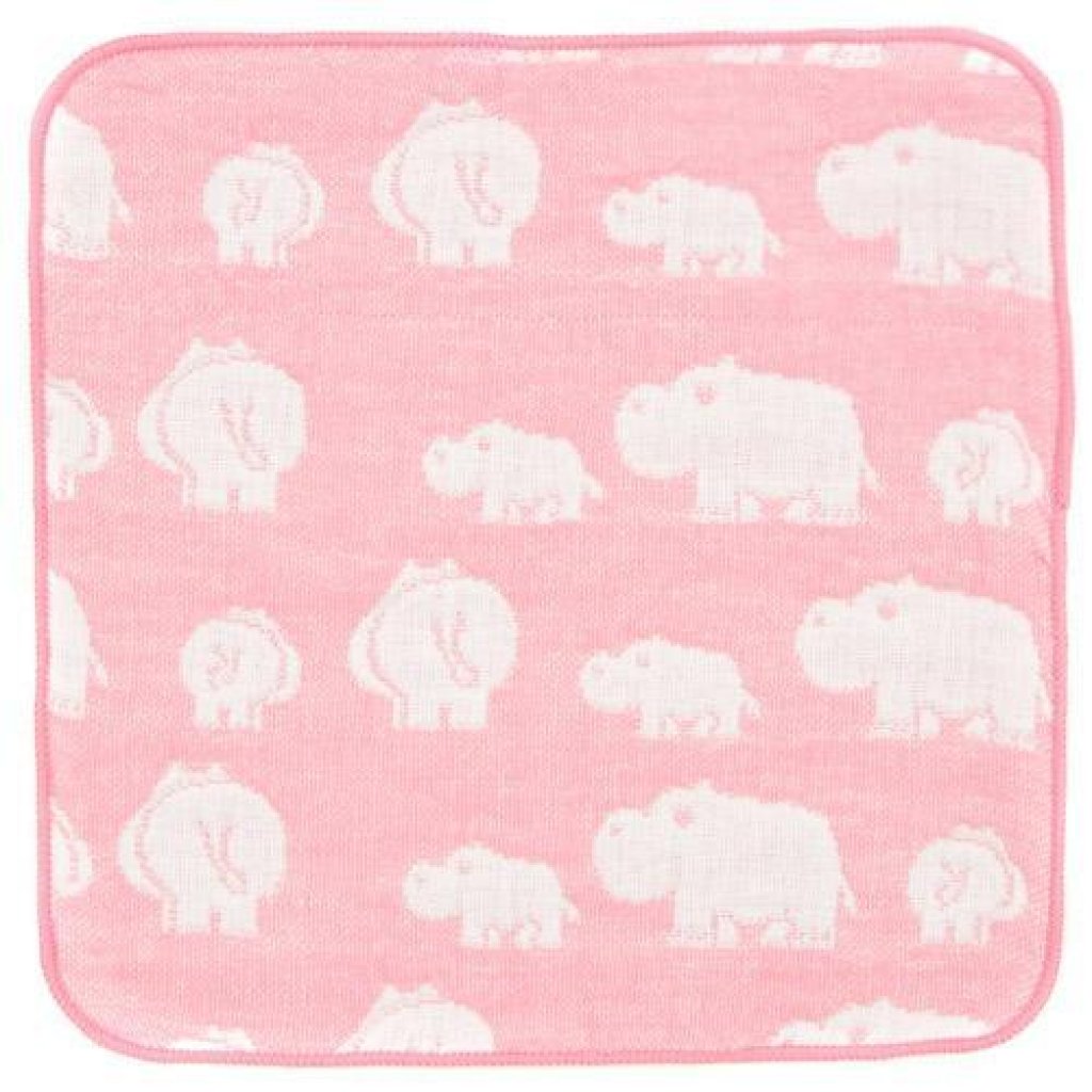 日本六層紗布純棉動物小方巾(粉紅河馬) 20x20 (日本製)